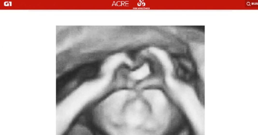 A ultrassonografia mais fofa que você verá hoje foi feita em uma maternidade de Rio Branco, no Acre. Nela, uma bebê, que vai se chamar Maria Valentina, aparece fazendo um coração com as mãos. A mãe, Ludmila Pereira, fez o exame para acompanhar a gravidez na última quinta-feira (13). Ela está no 7º mês de gestação. Ela e o pai da bebê, Francisco Manueres, se surpreenderam com a imagem.