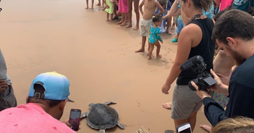 Uma tartaruga achada coberta de óleo em Ilhéus, no litoral sul, foi devolvida ao mar neste domingo (15). A ação foi feita um mês e meio após o animal ser resgatado. Segundo o G1, a tartaruga estava no hospital veterinário da Universidade Estadual da Santa Cruz (Uesc), onde recebeu os primeiros socorros. Após voltar a respirar de forma normal, o animal seguiu de carro para uma base do Ibama montada na península de Maraú, também no sul da Bahia.