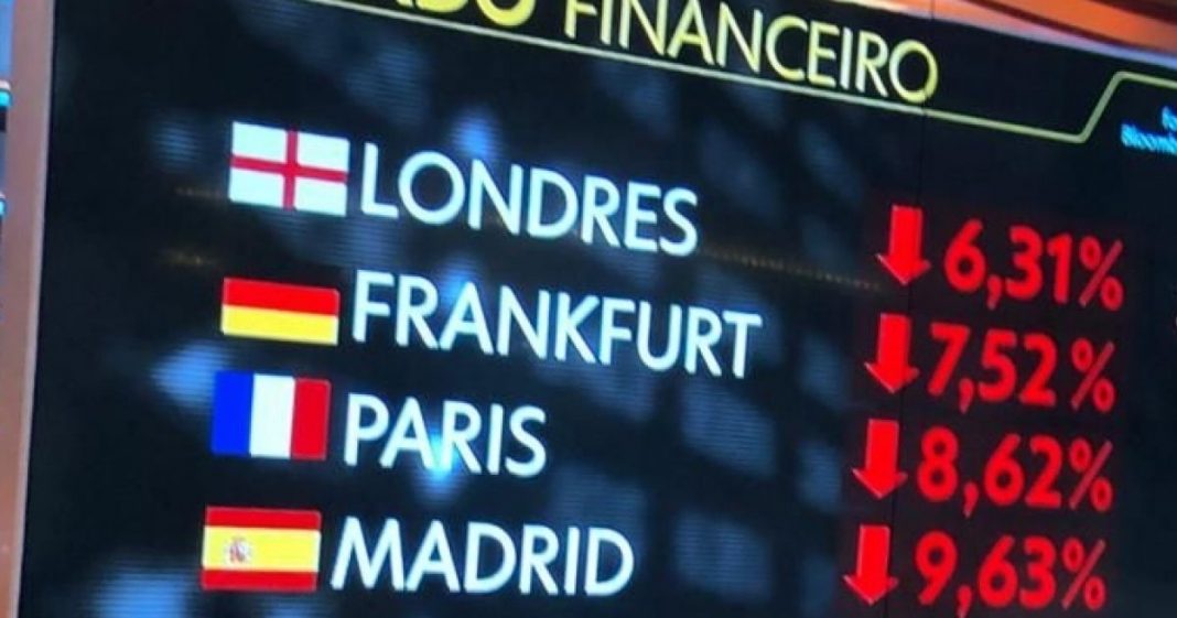 O mercado financeiro viu as bolsas de valores de todo o mundo abrirem em queda nesta segunda. A mais afetada foi a de Madri, onde os índices registram baixa de 9,63%.