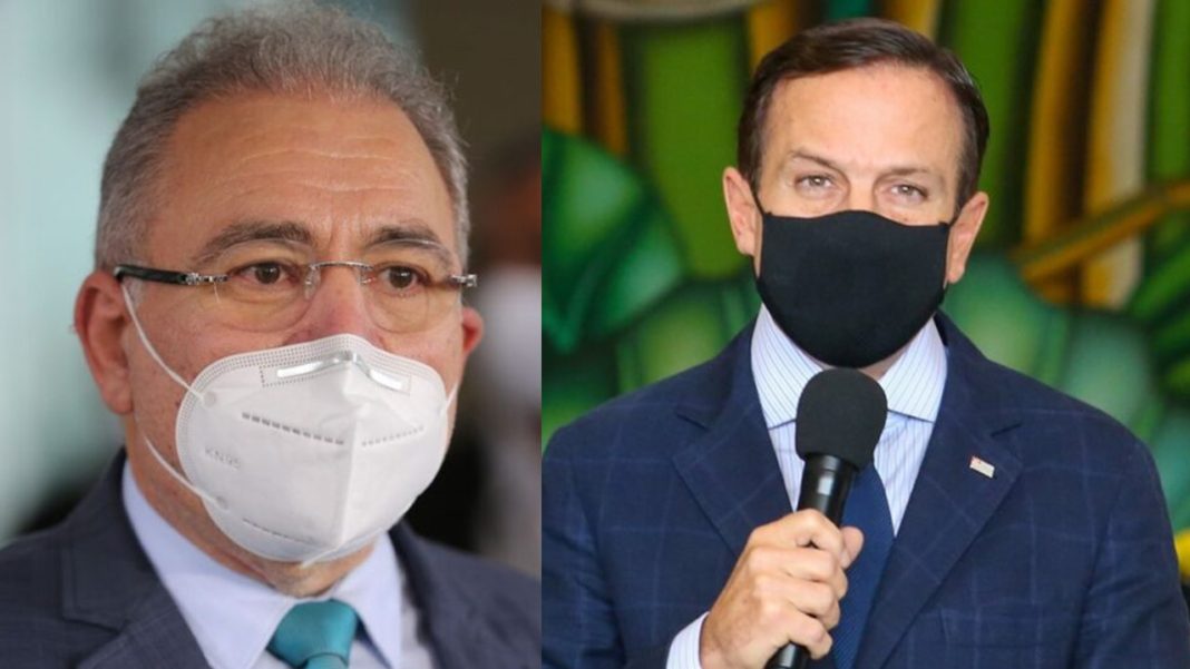 Doria rebateu afirmando que o ministério estava deixando as doses na prateleira. “Ministro, hoje o Brasil registrou 2 mil mortes. É uma vergonha o sr achar normal guardar vacina na prateleira porque é feriado. Tripartite pra mim é vacina no braço. Somos servidores públicos. Temos a missão de vacinar os brasileiros com urgência”, escreveu.